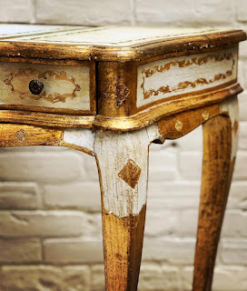 STAY HOME. STAY PRETTY. Swipe to see more of this Vintage Italian Gold Leafed and Painted 2 Drawer Wood Vanity with a Flip-Up Mirror. 1960s. It also functions as a Console Table.